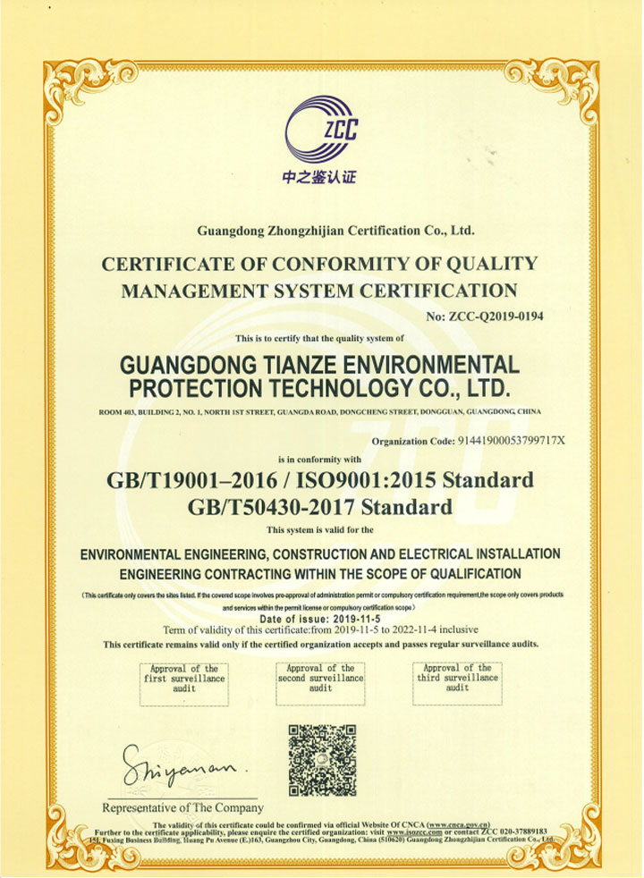 廣東天澤環保科技有限公司承接廢水處理工程、污水處理工程等各類廢水處理、工業污水處理!研發及銷售廢水、廢氣、噪音、純水、中水設備、機電設備、環保材料及藥劑;專業承包環保工程、市政公用工程、機電安裝工程、節能工程;專業服務環保設施運營、環境影響評價、環保項目投資及設計及咨詢等、噪音處理、中水回用等項目,在城市的廢水改造和養殖場污水處理這塊有豐富的經驗。公司主要業務范圍有:研發及銷售廢水、廢氣、噪音、純水、中水設備、機電設備、環保材料及藥劑;專業承包環保工程、市政公用工程、機電安裝工程、節能工程;專業服務環保設施運營、環境影響評價、環保項目投資及設計及咨詢等。公司自行生產的設備有:污水處理設備、廢水處理設備、養殖場污水處理設備和廢氣處理設備廣銷全國各地,同時天澤環保也為各大企業辦理排污許可證。公司成立于2012年,注冊資本1080萬元,是一家專業致力于環保設備、環保工程及技術服務的高新科技企業,公司專業致力于環保工程的設計、施工、安裝、調試和運營服務,同時從事相關環保設備制造和銷售,辦理相關環評等環保咨詢服務,是一家全方位的環境檢測公司。 公司以科技為先導,積極與各所知名高校的環境科學研究單位進行合作,力求把廢水處理工程和廢水處理工程項目做好做優,不斷的推動了環保技術向高深層次、多領域的方向發展。在環保工程界打造一流品牌